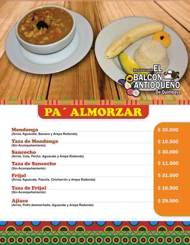 Ubicado en el corazón del municipio de Quimbaya, Quindío, justo frente al parque principal, El Balcón Antioqueño ofrece una experiencia gastronómica que honra la tradición antioqueña.